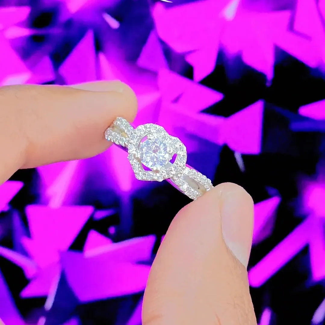 Silver Promise Heart Crystal Ring